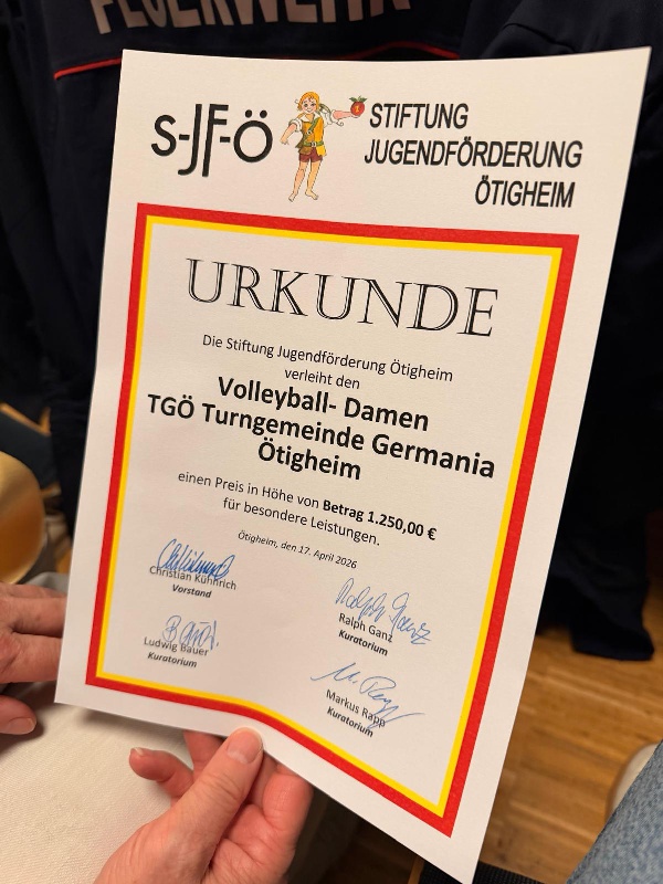 Voller Stolz und mit dem Dank an die Stiftung Jugendförderrung verbunden nahmen Spielerinnen und Trainerin die Auszeichnung entgegen. Sicherlich ein Ansporn, auch weiterhin dafür zu sorgen, dass in Ötigheim erfolgreich Volleyball gespielt wird.